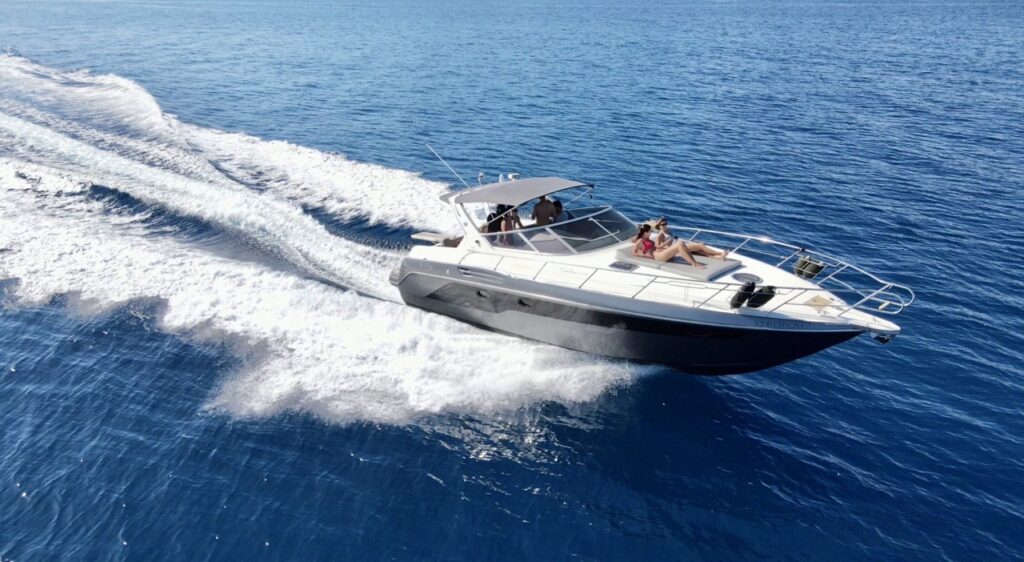 Agility, power & elegance. This luxury boat manages to impress any selective guest who is looking to charter a yacht in Zakynthos!